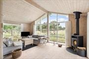 Sommerhuset byder dig velkommen med et skønt lysindfald og en indretning, hvor der er kræset for detaljerne. De store vinduespartier inviterer naturen helt tæt på og skaber en let og indbydende atmosfære i hele huset. Hjertet af sommerhuset er opholdsrummet, hvor køkken og stue er smeltet sammen i ét hyggeligt miljø. Her kan du lave mad i det åbne køkken, mens du følger med i børnenes brætspil eller sludrer med dem, der slapper af i sofaen. Når mørket falder på, lægger rummet op til ægte sommerhushygge med stearinlys og varme tæpper. Huset har tre gode soveværelser med plads til hele familien – og måske et par gæster. Badeværelset er lækkert og indbydende, og der er skruet op for komforten, så ferien kan nydes i fulde drag fra første dag.