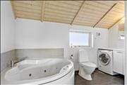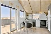 På grund af den særlige adresse kan I hilse på Vesterhavet, så snart I står op og går ud for at sætte morgenkaffen over. I stuen og det integrerede køkken er der nemlig havudsigt mod sydvest – og mens kaffen brygger færdig, kan I passende stå ved vinduet og falde i staver over det smukke syn. Er det køligt udenfor, kan I lade brændeovnen sprede varme og hygge i det dejlige opholdsrum, og når I kommer hjem fra dagens udflugter, kan I forkæle jer selv med et spabad på badeværelset. Tilbringer I aftenen hjemme i huset, kan I beundre solnedgangen over havet og måske se en god film i sofaafdelingen, inden I går til ro på husets lyst indrettede soveværelse.