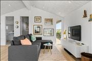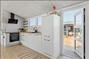 Der blev gået grundigt til værks, da sommerhuset blev moderniseret i 2019. Indretningen er lækker og smagfuld – men på den neddæmpede måde, så rummene stadig emmer af hygge og ægte sommerhuscharme. Alle rum præsenterer sig godt, for æstetikken er mindst lige så tiltalende på badeværelset og de to soveværelser som i husets store opholdsrum. Her i rummet, hvor stue og køkken er forenet, er der indfaldslys fra tre verdenshjørner, og udsigten er imponerende: Ved spisebordet vender de store panoramavinduer lige ud mod havet og de stejle skrænter, der ligger blot 150 meter fra huset, og sætter I jer i sofaafdelingen, kan I nyde det flotte syn af Rubjerg Knude Fyr gennem det smalle, sydvendte vindue.