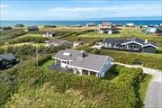 Fra grunden er der en skøn udsigt over området og også et lille glimt af Vesterhavet. Der er terrasser på to sider af huset, og udgang fra opholdsrummet til begge, så det er nemt at tage flere af feriens måltider med udendørs. Grill og havemøbler hører naturligvis også til huset, så det er med at nyde mest muligt af ferien udendørs.