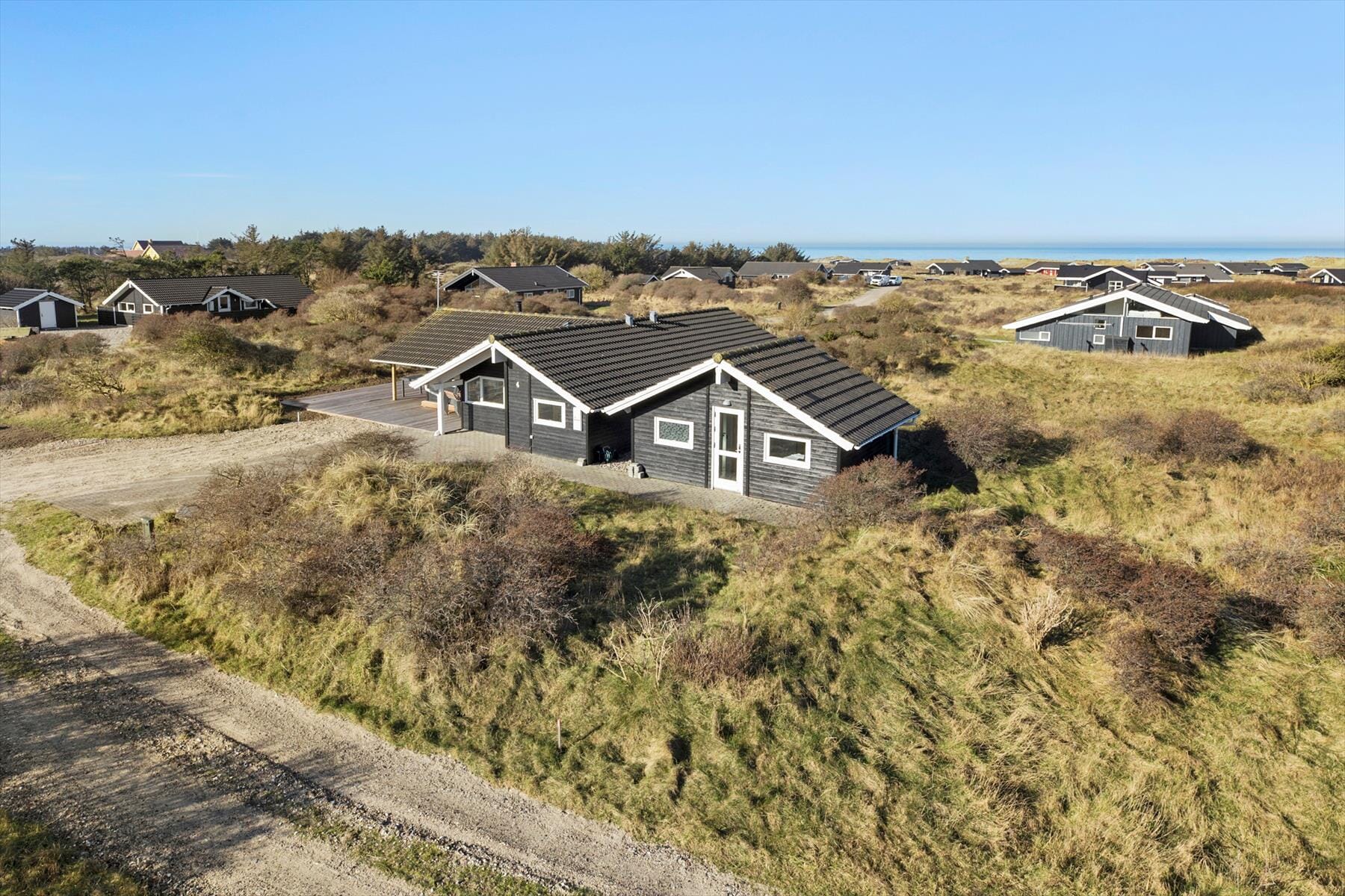 Klitmarken er del af et lukket og dermed roligt sommerhusområde. Vil I ned til stranden, kan I skyde genvej via en lille sti gennem det flade landskab – og hvis I hellere vil nyde Vesterhavet fra afstand, har I den mest fantastiske udsigt over Nørlev Strand fra toppen af Lien. I højsæsonen er HAVS Nørlev et besøg eller mange værd, for her kan I spise is, drikke kaffe, booke et surfkursus og meget mere. Lokalområdet kan oplagt udforskes til fods eller på cykel, hvis I ikke tager bilen for at køre til Skallerup Indlandsklitter, Rubjerg Knude eller den charmerende kystby Lønstrup.
