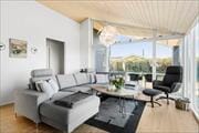 Alt står knivskarpt i dette sommerhus, der er opført i en enkel og tidløs arkitektur. Indenfor vil I blive overvældet over det imponerende lysindfald fra de store vinduespartier, der sætter det smagfulde interiør flot i scene. Indretningen er gennemtænkt og giver ferieturens hyggelige samvær de bedste betingelser. Køkken-alrum og stue ligger i åben forbindelse, og fra både køkken og stue er der flot havudsigt. Den murede, dobbeltsidede brændeovn skruer ekstra op for hyggen på de kølige aftener, og det veludstyrede køkken er udstyret med en spisedisk, hvor der kan serveres et glas vin, mens maden bobler på komfuret. Huset byder endvidere på tre gode soverum samt to badeværelser med brus.