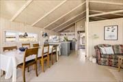 Dette sommerhus er opført i 1985 og er godt vedligeholdt gennem årene. Det har den helt rigtige sommerhusstemning med masser af lys fra de store vinduer, loft til kip, hvidmalede gulve i alle rum, en flot brændeovn, en charmerende indretning med loppefund, afdæmpede farver og varme tekstiler, og sidst men ikke mindst en smuk udsigt til klitlandskabet og Vesterhavet. Huset egner sig til 2-4 personer og består af tre soveværelser, et badeværelse med bruser og et stort, åbent køkken-alrum, hvor alle kan mødes til madlavning, spisning og hygge med spil, snak eller en god film. Af moderne faciliteter kan nævnes både vaskemaskine, tørretumbler, kabel-tv og trådløst Wi-Fi, så medbring gerne pc eller tablets, så det er nemt at søge på informationer om områdets mange attraktioner og muligheder.