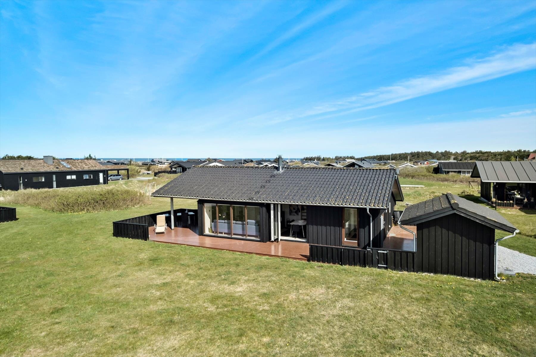 Inden døre i det 94 m2 store kvalitetssommerhus bidrager både små og store detaljer til det gennemført lækre helhedsindtryk – lige fra de flotte trægulve og det nøje udvalgte interiør til loftet, der går helt til kip. De store vinduespartier lukket masser af dagslys ind og sørger for, at I kan se til indlandskrænten, der knejser over det ellers flade kystlandskab. Stue og køkken ligger samlet som et stort og stemningsfuldt opholdsrum, og her har I gode arbejdsforhold, når der skal kokkereres samt dejlige rammer om både middage og sofahygge. De tre soveværelser er alle med gode senge og god skabsplads, og på det største af de to badeværelser er det muligt at slappe af i saunaen og få et velfortjent spabad.