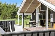 Syd for sommerhuset ligger en stor og solrig træterrasse, som skærmes delvist af et hegn. Under overdækningen er der glasværn mod vest, hvis I har brug for at finde læ for brisen, og hvis I hellere vil lege eller spille bold på græsset, er der mulighed for det på den 1500 m2 store grund.
