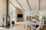 Det hyggelige sommerhus passer fint til seks personer, for der er tre soveværelser at gøre godt med. I løbet af dagen kan I slænge jer i stuens alkove – for eksempel med en spændende roman eller en avis – hvis ikke I slår jer ned i sofaafdelingen eller samles ved spisebordet. Med loft til kip, lyse trægulve og tilsvarende trævægge virker rummet lyst og venligt, og en brændeovn står klar til at sprede varme og hyggestemning. Det åbne køkken er udstyret med opvaskemaskine og alt det nødvendige, når I vil forberede en brunch eller andre feriemåltider, som enten kan indtages her i opholdsrummet eller ude på den tilstødende terrasse. Et badeværelse hører selvfølgelig også med til planløsningen, og det er med bruseniche og vaskefaciliteter, så I har alt det nødvendige inden døre.