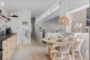 Huset er omsorgsfuldt renoveret i 2019, og inden døre er der fundet en rigtig god balance mellem originale detaljer og moderne opdateringer. Resultatet er et gennemført indbydende sommerhus med lyse og stemningsfulde rum, man har lyst til at opholde sig i. Et af husets charmetræk er, at det er opført i flere niveauer, så fra husets spisekøkken er der åben forbindelse med trappe ned til en dejlig stue, der har brændeovn og udsigt til den grønne have. Der er for øvrigt også trappe ned til et af husets tre soveværelser, som alle er indrettet med komfortable dobbeltsenge. Endelig byder planløsningen på et badeværelse og et bryggers med vaskemaskine.