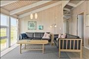 Sommerhuset er velindrettet med moderne og funktionelle møbler. Det veludstyrede køkken ligger i åben forbindelse med stuen. Fra køkkenet og stuen kan man nyde udsigten over det flotte klitområde. Der er tre soveværelser i huset. Et værelse med en dobbeltseng, et med en enkeltseng og et med to enkeltsenge. Der er mulighed for afslapning i badeværelset, som råder over både spabad og sauna. Sommerhuset har varmepumpe, som sørger for opvarmning i det store rum. Varmepumpen sørger for at holde energiforbruget på et minimum og kan give ca. 3-4 gange mere varme med samme energiforbrug, end en el-radiator. Derudover har huset solceller, der tilgodeser bæredygtigheden. Udover solcellerne, er den strøm der levers til huset, produceret fra danske vindmøller.