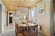 Med sort træfacade og flere terrasser præsenterer sommerhuset sig på klassisk vis midt på den grønne grund. Den klassiske sommerhusfornemmelse gør sig også gældende indenfor, for her er der træbeklædning på vægge og lofter, og en brændeovn bidrager med hyggestemning og varme temperaturer i stuen. Her kan I samles for at spille brætspil, se TV eller bare slappe af i sofaafdelingen – og hvis I er ved at blive sultne, kan I gå i gang med at forberede aftensmaden i den åbne køkkenafdeling. Et badeværelse hører selvfølgelig også med til planløsningen, og endelig er der tre soveværelser, der alle er indrettet med dobbeltseng.