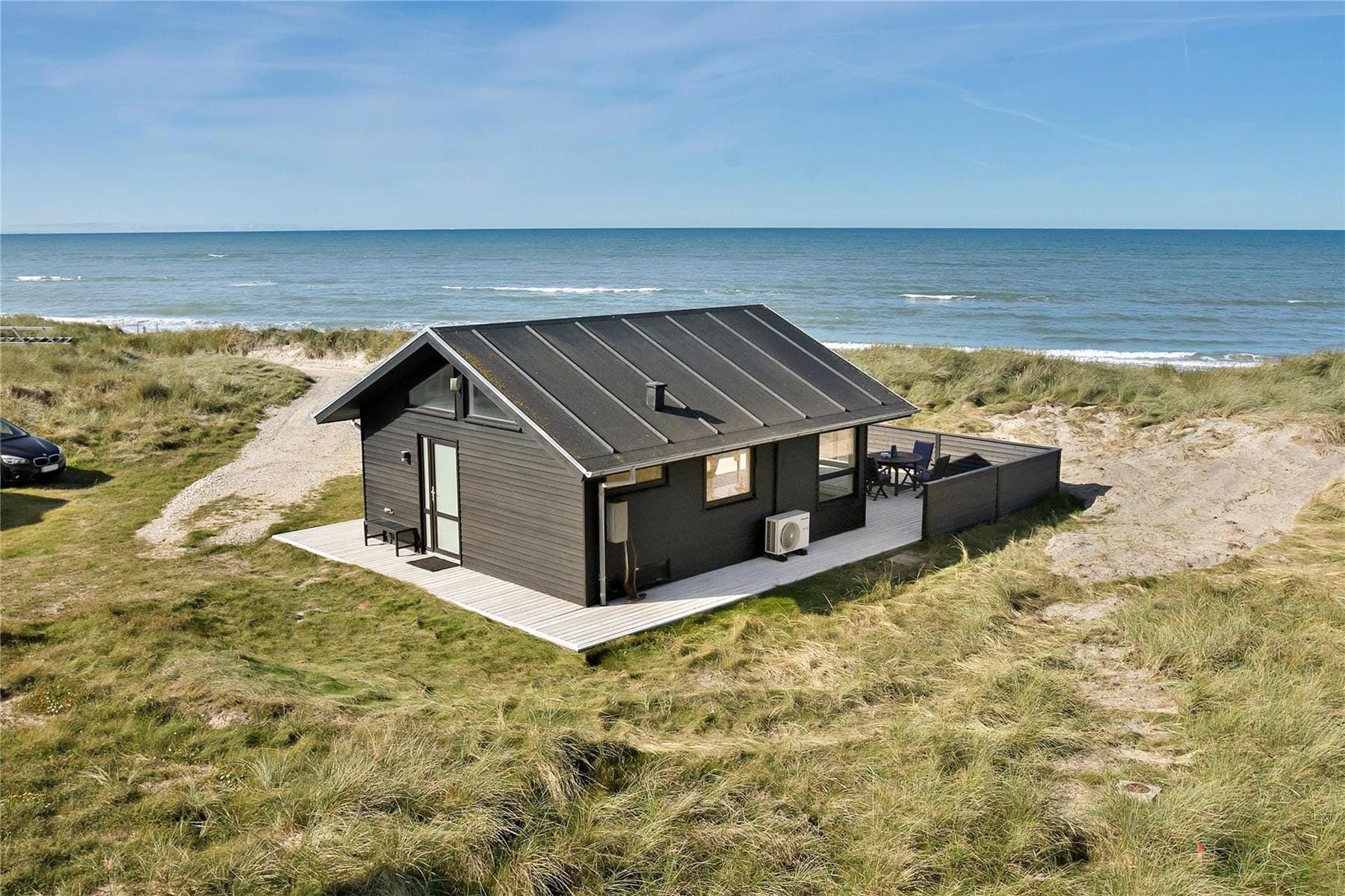 Dette hyggelige sommerhus har en formidabel placering i første parket til Vesterhavet. Der er blot 25 meter ned til stranden, og på husets terrasse kan I nyde den salte havluft, solen og det smukke klitlandskab fuldstændig ugeneret