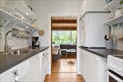 Huset indeholder: Lyst køkken med elkomfur, 4 kogeplader og ovn, vaskemaskine, opvaskemaskine, køleskab, kaffemaskine, elkedel, køkkengrej og service.