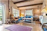 Du træder ind i et dejligt vinterisoleret sommerhus, hvor stue og køkken er i åben forbindelse. Her er hyggeligt og en dejlig sommerhusstemning med TV, møbler og brændeovn, samt varmepumpe. Og er der noget bedre end at sidde på de kølige dage og høre brændet knitrer i brændeovnen? I stuen kan I være samlet og tale om dagens oplevelser eller planlægge næste dags tur. Huset har 3 værelser, 2 med dobbeltseng og 1 med 2 enkeltsenge. Her er et godt badeværelse med toilet, håndvask og bruseniche, samt vaskemaskine. Fra stuen er der et stort vinduesparti med udgang til en delvis overdækket terrasse som er hyggeligt møbleret med havemøbler.