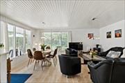 Dejligt sommerhus i godt område. Huset er indrettet lyst og åbent. Stuen har godt lysindfald og er i åben forbindelse med det funktionelle køkken. Spisepladsen har også et stort vinduesparti med udsigt over grunden og hyggehjørnet indeholder sofa og TV. Der er adgang til den store træterrasse fra stuen. Huset har tre gode værelser med hver to enkeltsenge. Badeværelset er indrettet med toilet og bruseniche samt gulvvarme.