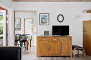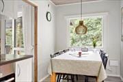 Dette lille hyggelige sommerhus har en lille stue med sofa, fjernsyn og brændeovn. Herfra er der udgang til terrassen. Der er et godt indrettet køkken med spiseplads. Der er 3 soveværelser samt et badeværelse. Huset egner sig godt til den lille familie, som vil have et godt hus i et godt område.