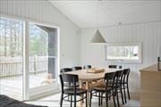 Dejligt sommerhus som er lyst og hyggeligt indrettet med naturmaterialer og rolige farver. Dette sammen med udsigten til træerne gennem de mange vinduespartier gør, at naturen føles som en del af husets indretning. Huset er indrettet med dejligt funktionelt køkken, som er udstyret med lækre detaljer - blandt andet en Quooker, så der altid er kogende vand i hanen. Det åbne køkken gør, at du fortsat er en del af selskabet imens dagens lækkerier tilberedes. Stuen med de store vindues partier og træloft i kip indbyder til samvær og hygge. Tænd op i brændeovnen, find familiespillet frem og nyd aftenen imens du slapper af i sofaen. De fire soveværelser har alle kig til naturen og er indrettet med henholdsvis en dobbeltseng eller to enkeltsenge. Badeværelserne er rummelige og godt indrettede, det ene med vaskemaskine og tørretumbler. Et godt hus til den perfekte ferie.