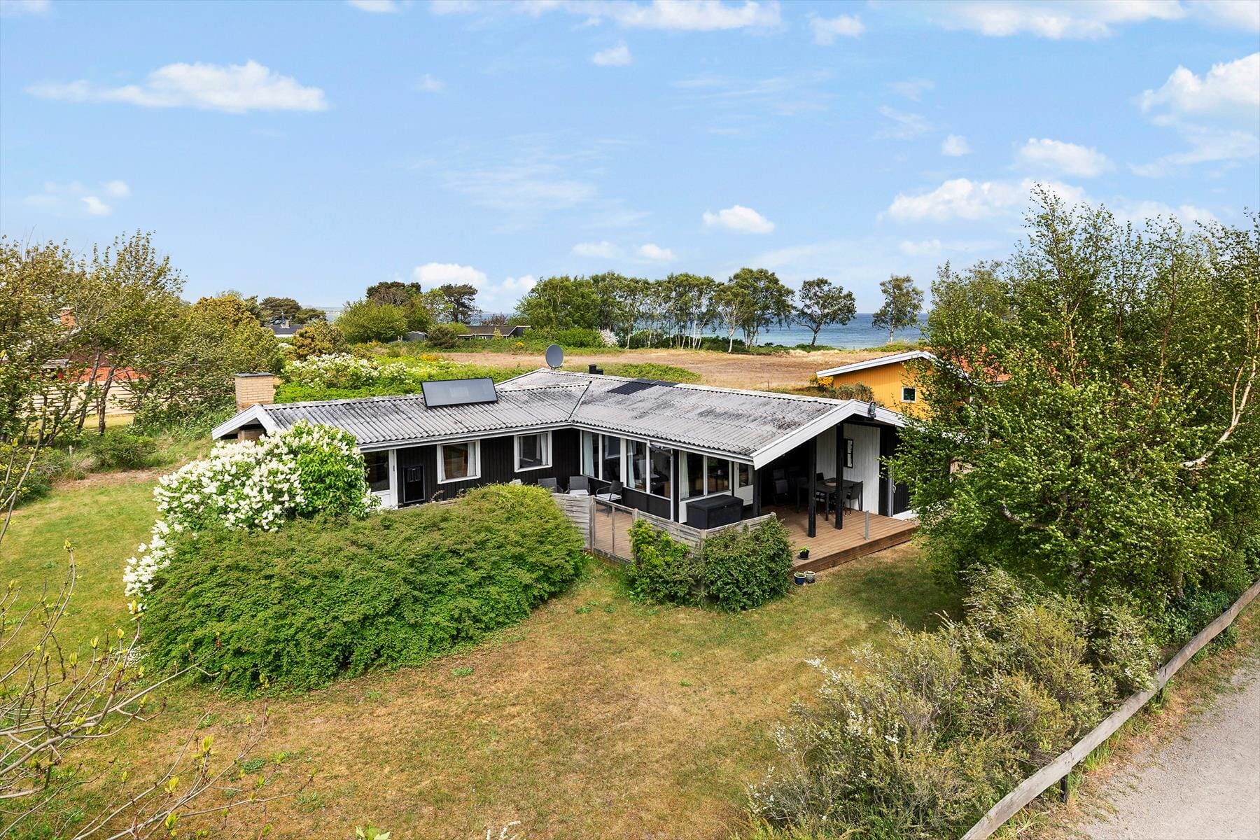 Huset ligger på en åben grund, her er god plads til leg og spil. Fra køkkenet er der adgang til en åben terrasse, her kan du sidde og opleve udsigten over Østersøen mens du nyder et veldækket morgenbord. På den overdækkede terrasse kan du senere på dagen tænde grillen og tilberede en lækker middag og mens den simrer på grillen kan du slappe af.