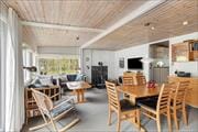 Dette skønne sommerhus i Dueodde byder dig indenfor til en ferie fyldt med hygge og afslapning. Stuen er lys og rummelig med store vinduer, der giver et fantastisk udsyn til naturgrunden. Her finder du en hyggelig sofakrog med brændeovn og TV – det perfekte sted at nyde en stille aften med familien efter en dag fyldt med oplevelser. Køkkenet ligger i forbindelse med spiseområdet, så samtalen kan flyde frit, mens dagens måltider tilberedes. Sommerhuset har to soveværelser – et med dobbeltseng samt et med enkeltseng og køjesenge – som alle emmer af ro og komfort. Badeværelset er moderne og funktionelt indrettet med toilet, bruseniche og sauna. Et ideelt hus til en afslappende ferie i skønne omgivelser.