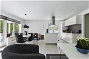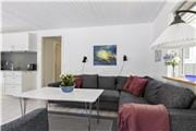 Stor lys stue kombineret med spiseplads og åbent køkken med kogeø. De store vinduespartier giver et godt lysindfald og god udsigt til grunden. De tre gode soverum er indrettet med dobbeltseng i de to og to enkeltsenge i det sidste. Det store badeværelse er indrettet med bruseniche. Et hus med god plads til de 6 personer, der maksimalt kan leje det.
