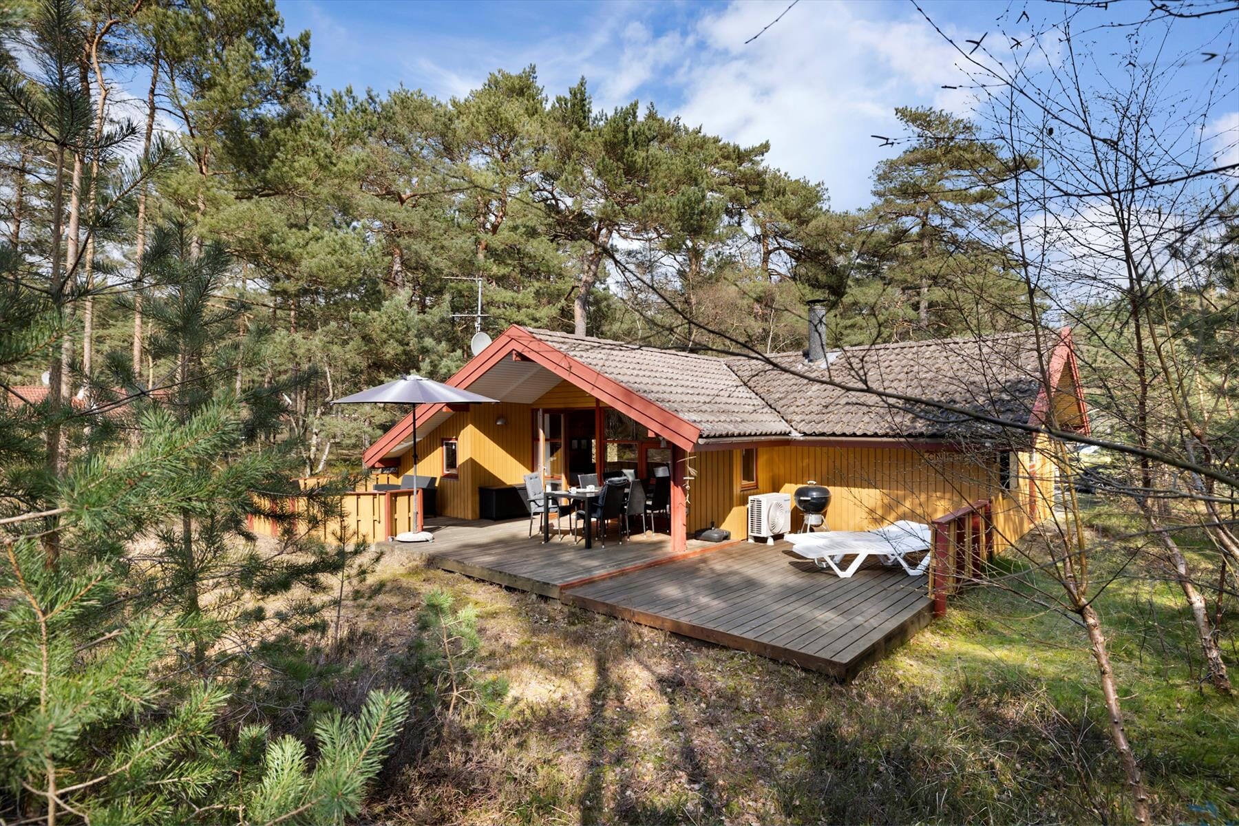 Naturgrunden og den omliggende skov gør sit til at skabe en hyggelig og indbydende atmosfære omkring huset. Her er to møblerede terrasser, den ene er delvist overdækket og den anden er skærmet så det er muligt at sidde her uforstyrret. Grunden er på 2500 m2 så der er god plads til leg.