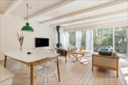 Godt klassisk sommerhus med en lys og rummelig stue i tilknytning med delvist åbent og veludstyret køkken. Fra stuen er der udsigt og udgang til den delvis overdækkede terrasse og store naturgrund. Stuen er indrettet med TV-hjørne, brændeovn og spiseplads. Dejligt lyst med trægulve og stort vinduesparti ud mod terrassen. Via mellemgangen er der adgang til tre gode soveværelser, hvoraf to er indrettet med dobbeltsenge og et med en enkeltseng. Badeværelset har toilet og bruser samt gulvvarme.