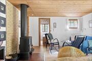 Lyst og indbydende sommerhus som er godt indrettet. Stuen er lys og åben med et hyggeligt sofahjørne med udsyn til naturgrunden via den dobbelte terrassedør, som giver et godt lysindfald i huset. I tilknytning til stuen er det åbne og funktionelle køkken, hvor dagens måltider kan tilberedes imens du fortsat er en del af selskabet. Mellem sofahjørnet og køkkenet finder du det hyggelige spiseområde samt brændeovnen, som kan tændes på en kølig hyggeaften. Fra spiseområdet/stue er der adgang til den delvis overdækkede terrasse. Huset er indrettet med to soveværelser, et med dobbeltseng og et med køjesenge. Badeværelset har toilet og bruseniche. En afslapningsferie her vil I tænke tilbage på med glæde.