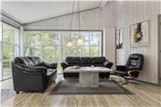 Stuen er holdt i lyse farver og med sine panoramavinduer er der her et smukt lysindfald. Stuen vil helt sikker blive familiens samlingssted. Fra stuen er der adgang til den store og møblerede terrasse. Slå dørene op og nyd duftene og fuglenes smukke sang når du slapper af i sofaen. Køkkenet og spiseområdet er forenet på en velfungerende og praktisk måde, også her er der valgt lyse farver. Spiseområdet har vindue mod en sydvendte træterrasse og herfra er der også adgang til terrassen. Huset har 4 soverum, 2 med dobbeltsenge, 1 med 2 enkeltsenge og 1 med 1 enkeltseng. Samt en hems med 2 madrasser, her er der også fjernsyn og gode stole at slappe af i. Huset har et badeværelse og et gæstetoilet med vaskemaskine og tørretumbler, også her mødes du af lyse farver.