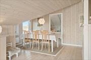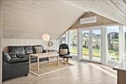 Inde i sommerhuset mødes du af en rar og rolig stemning, der hurtigt får skuldrene til at sænke sig. Indretningen er enkel, lys og funktionel, så du føler dig hjemme fra første øjeblik. Det åbne opholdsrum samler køkken, spiseplads og stue i ét – hvilket gør det nemt at være sammen, uanset om der kokkereres, hygges med kortspil eller deles grin over aftenkaffen. Store vinduer sørger for masser af dagslys og giver et fint udsyn til den omkringliggende have, som nærmest flyder sammen med stuen. Her kan både familier og vennepar nyde en afslappet ferie med plads til både samvær og fordybelse – uanset om det foregår med tæpper og varm te eller sommerstemning og kolde drikke.
