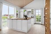 Så snart du træder ind ad døren, mærker du den rare og uformelle atmosfære, som gør sommerhuset til noget helt særligt. Det er enkelt og hyggeligt indrettet med sans for den klassiske, danske sommerhusstil – og samtidig så lyst og imødekommende, at man straks får lyst til at slå sig ned. Stuen er husets naturlige samlingspunkt med brændeovn, spiseplads og opholdsområde i åben forbindelse med køkkenet, så alle kan være sammen om dagens små og store øjeblikke. Når aftenen falder på, og vinden rusker udenfor, er det oplagt at tænde op i brændeovnen og nyde den knitrende varme. Børnene vil elske hemsen, som både fungerer som ekstra legeplads og hyggelig soveplads – og der er naturligvis også gode, rolige værelser til de voksne.