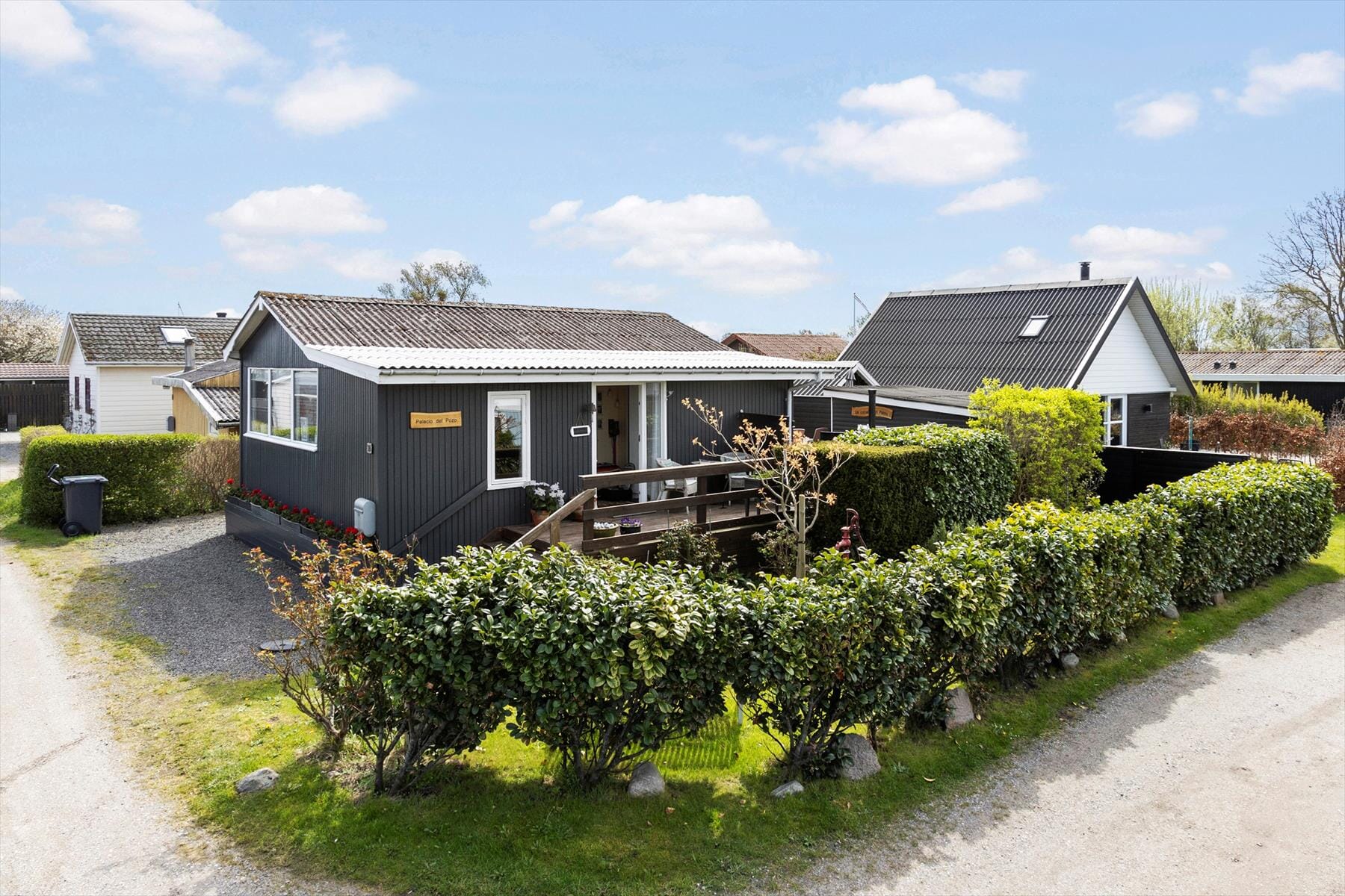 Udendørsarealerne ved sommerhuset er skabt til afslapning og nærvær. Den lukkede gårdhave er en sand oase, hvor du kan slappe af i fuld privathed – her er det oplagt at nyde morgenkaffen, grille aftensmaden eller læse en god bog i skyggen. Den omkringliggende have er overskuelig og nem at holde, og med flere hyggelige kroge er der rig mulighed for at finde en solrig plet dagen igennem. Den store terrasse med adgang fra stuen er det naturlige samlingspunkt, hvor du kan samle familie og venner til hyggelige måltider under åben himmel. Men det største trækplaster er uden tvivl den fantastiske beliggenhed – bare få skridt fra en af Fyns bedste og mest børnevenlige badestrande. Her kan børnene lege trygt i det lave vand, og de voksne kan nyde solen, en frisk dukkert eller en rolig gåtur langs kysten. Det er ferie, når det er bedst – med sand mellem tæerne og ro i sindet.