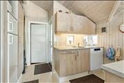 Sommerhuset byder dig varmt indenfor med sit åbne og lyse opholdsrum, hvor stuen og køkkenet går i ét. Her kan du samle familie og venner om hyggelige stunder, hvad end I spiller spil i den indbydende alkove, nyder et måltid ved spisepladsen eller slapper af i sofaen foran den knitrende brændeovn. Den store træterrasse, som har direkte adgang fra stuen, inviterer til måltider under åben himmel og afslappende dage i liggestolen med udsigt til haven og havet i horisonten. Badeværelset er et af sommerhusets helt store trækplastre med sit luksuriøse spabad og sauna – et ideelt sted at lade kroppen få ro efter en dag ved stranden eller en tur i området.