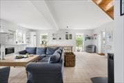 Når du træder indenfor i sommerhuset, mødes du straks af et dejligt, lyst køkken-alrum, som indbyder til hyggelige timer med familien. Brændeovnen i hjørnet af rummet skaber en varm og indbydende stemning, perfekt til at krybe sammen foran på køligere dage. Fra både køkkenet og stuen har du en smuk udsigt til havet – en udsigt, som for alvor understreger den særlige atmosfære ved dette sommerhus. I stuen fører en bred trappe dig op til førstesalen, hvorfra du også kan nyde den skønne havudsigt. Det er nemt at forestille sig afslappende øjeblikke her med en god bog eller bare at lade blikket hvile på bølgerne i det fjerne.