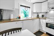 Dette skønne sommerhus fremstår lyst og indbydende og har en god planløsning. Sommerhusets hjerterum er den store stue med plads til at alle kan samles om spisebordet og nyde udsigten til den store grund. De kølige sommeraftener kan nydes foran TV-et eller med en god bog i sofaen alt imens brændeovnens knitren giver den gode sommerhusstemning. Der er fra stuen udgang til den store træterrasse.