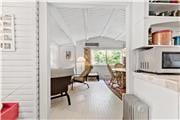 Sommerhuset tæt på den lille landsby Nyrup er anderledes indrettet med en stor stue med spisebord og en hjørnesofa i åben forbindelse med det bagvedliggende soveværelse. Har du små børn, er I således tæt på dem, når de skal sove, og I kan sidde i sofaen og spille eller samtale. Man skal være indstillet på at komme hinanden ved, da det er en åben planløsning i forhold til indretningen.