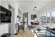 Spisebordet er midtpunkt i huset og placeret ved det lange vinduesparti med terrassedøre, der kan åbnes i hele sin længde ud mod terrassen. Her kan du samle familien til brunch efter en god nats søvn, inden I skal på oplevelse i området. Det åbne køkken ligger lige over for, og her er også barstole, så I kan være flere om at spise eller bare sidde og hygge og få en smoothie. Om aftenen, når I kommer hjem fra dagens oplevelser, kan du slappe af i hjørnesofaen. Har du brug for massage, står husets spa klar.