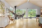 I dette velindrettede sommerhus med højt til loftet og hems som ekstra legeareal til børnene får du masser af plads. Hvis du er morgenmenneske, kan du snige dig ud på terrassen og nyde dagens første kop kaffe, inden resten af familien vågner. I stuen er der store panoramavinduer mod terrassen og haven, og der er masser af plads til alle. Fra køkkenet, kommer du nemt ud på terrassen, hvor du kan servere aftensmaden eller en kølig drink før aftensmaden.