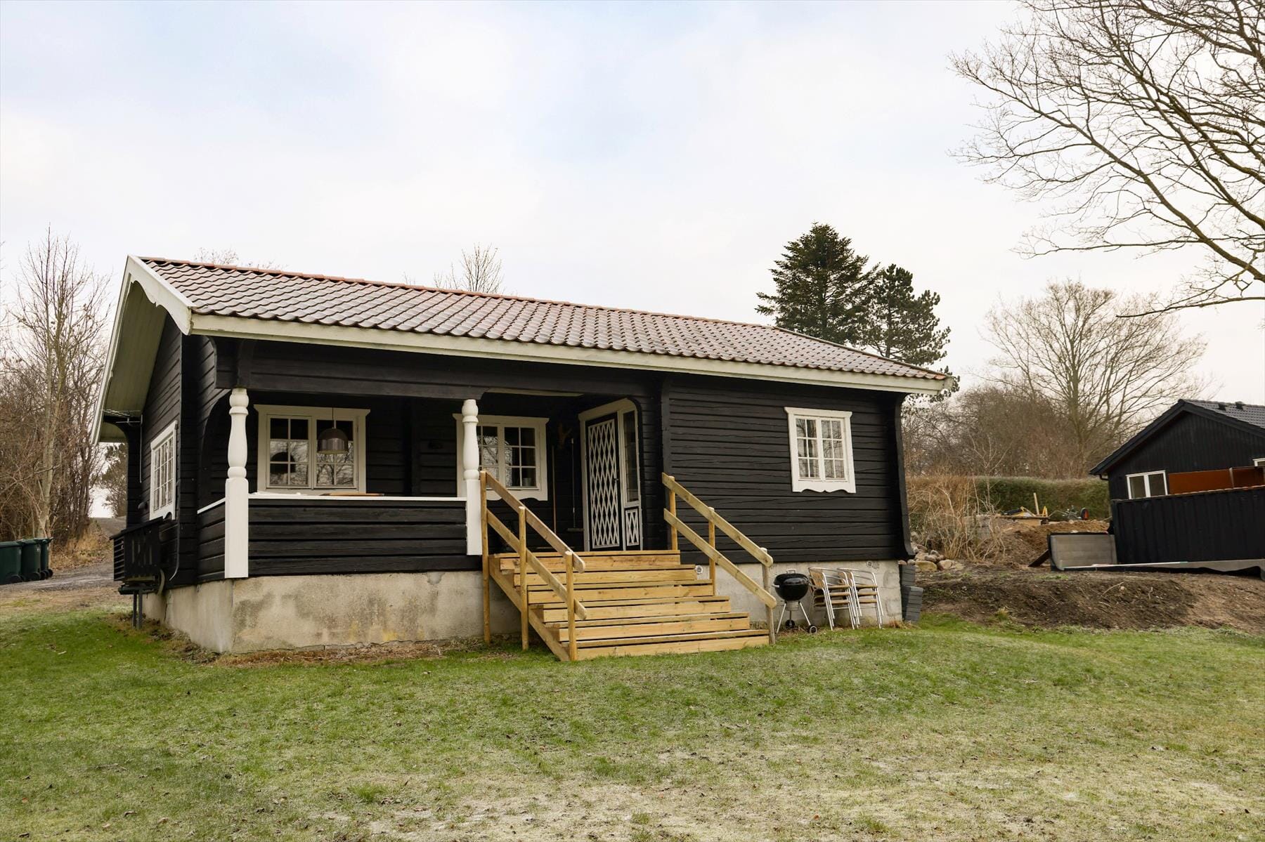Fra den overdækkede terrasse, kan du nyde udsigten mod søen og over markerne. Her er det også perfekt at sidde med et lille glas og bare nyde stilheden og stemningen en af de lune sommeraftener. Den skrånende grund, med det rige dyreliv er også perfekt til dig, der vil prøve at fange en gedde i søen eller bare nyde solen fra morgen til aften.