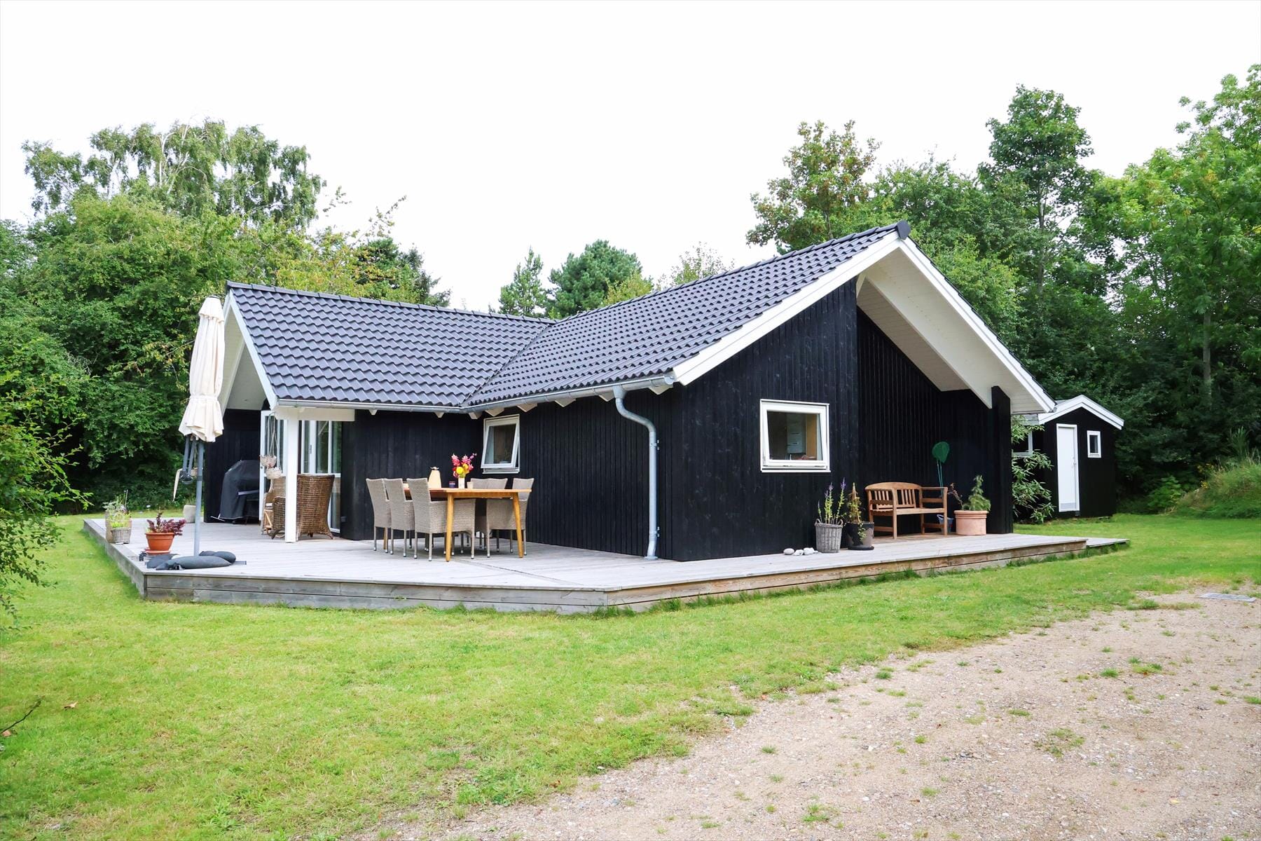 Sommerhuset er beliggende på en skøn grund i rolige omgivelser. På husets træterrasse kan eftermiddags- og aftensolen nydes i fulde drag. En varm anbefaling fra os, er at slå dig ned med en god bog og et tæppe og bare nyde stilheden. Hvis I pakker et par ketsjere, er det super hyggeligt med et spil badminton, som dine børn bestemt også vil sætte pris på.