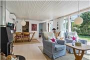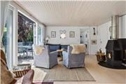 Dette charmerende træsommerhus ved Rude Strand byder på en lys og indbydende atmosfære, hvor du straks mærker den helt særlige sommerhusstemning. De store vinduer og de lyse trægulve gør rummet åbent og venligt, mens brændeovnen spreder varme og hygge på de kølige dage. Stuen har plads til både fælles måltider og afslappende stunder i sofaen, så her er det nemt at samles som familie. Indretningen er hyggelig og uformel, så du hurtigt føler dig hjemme og kan læne dig tilbage og nyde, at hverdagen er sat på pause. Det er et hus, hvor ferien får lov til at udfolde sig i rolige rammer, og hvor hyggen altid er i centrum.