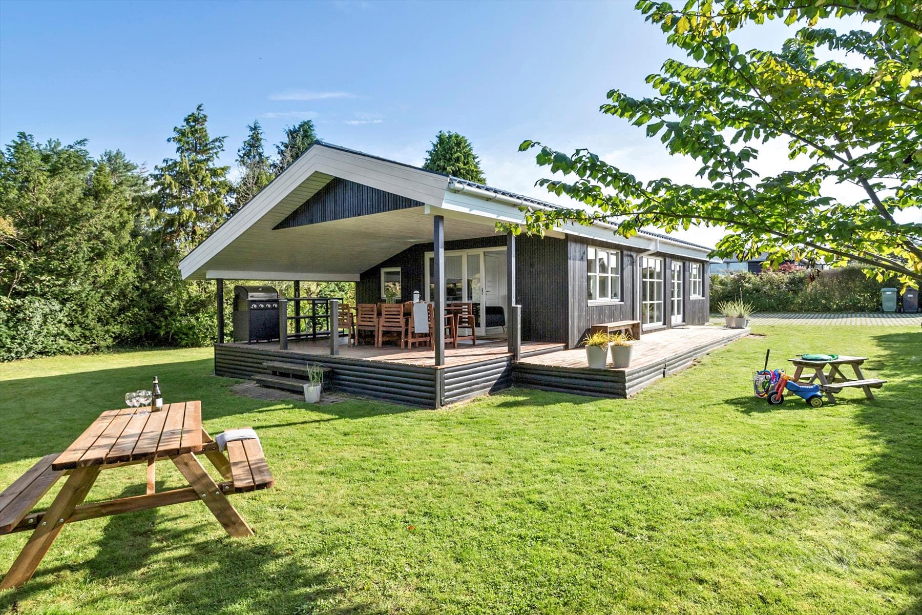 Sommerhus med udebruser, skønne terrasser og udekøkken tæt på Ajstrup Strand