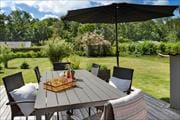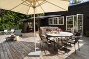 Sommerhuset har både åbne og overdækkede terrasser som gør at udelivet kan nydes store dele af året uanset vejret. Der er flere fine havemøbler, liggestole, parasol og loungmøbler, som kan nydes sammen med familien. Her kan I slappe af, læse en god bog eller lege på den store grønne plæne.