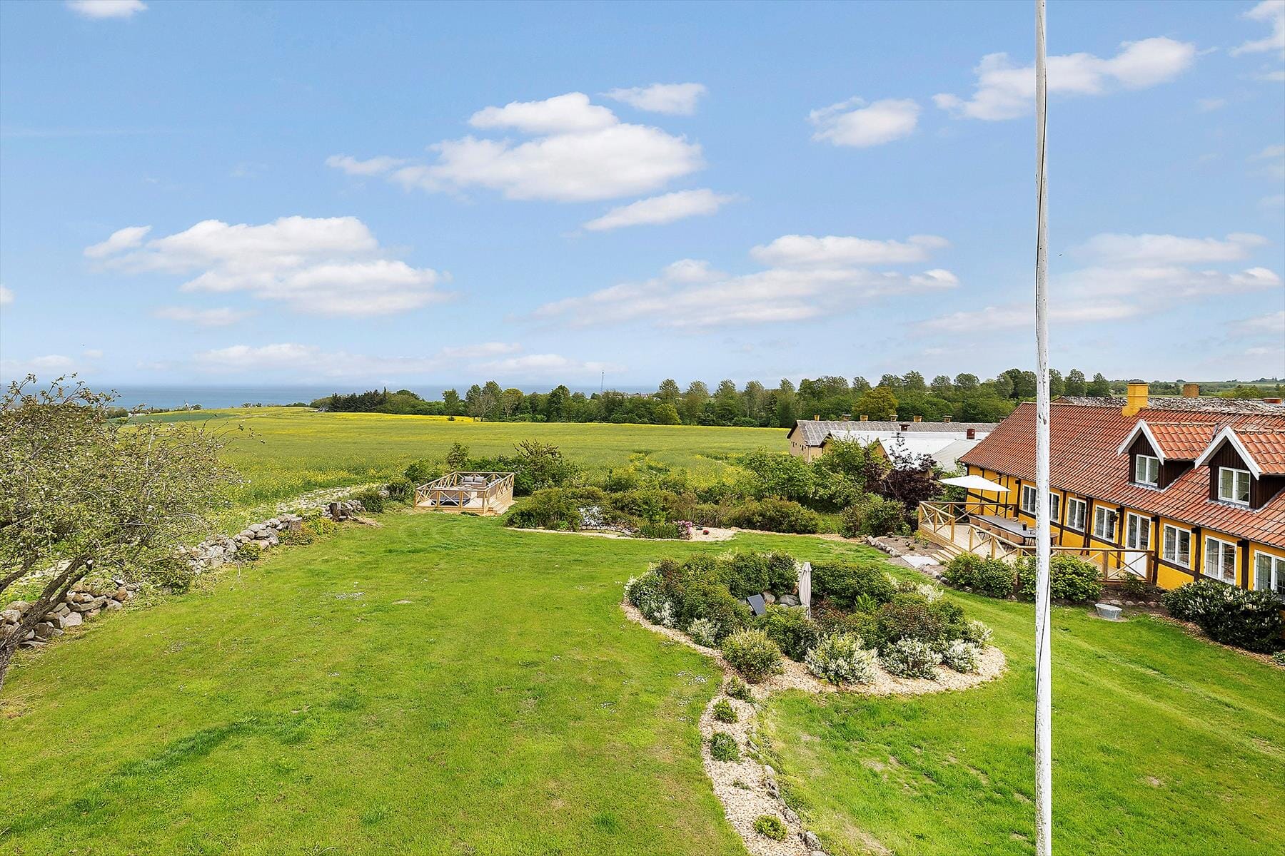 Det er næsten umuligt ikke at blive betaget af de idylliske omgivelser, der omkranser huset. Den store have byder på både fredelige kroge og åbne områder til leg og spil for børnene. Flere terrasser giver mulighed for at nyde dagens måltider under åben himmel – start morgenen med en kop kaffe på én af de solrige terrasser og afslut dagen med aftengrill i selskab med udsigten over Østersøen. Havemøbler, liggestole og grill står klar til brug, og haven omfavner jer med skønne træer og en ro, der næsten er meditativ. De omkringliggende marker bidrager til en landlig stemning, og dyrelivet kan opleves på nærmeste hold. Uanset om du vil læse en god bog, lege med børnene eller blot lytte til naturens lyde, er haven det perfekte sted.