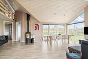 Flot feriehus indeholdende en entré med vaskemaskine og tørretumbler, et lille badeværelse med bruseniche og gulvvarme, 4 soveværelser – alle med dobbeltseng og skabsplads samt endnu et badeværelse med spabad og sauna. Derudover er der et veludstyret køkken i åben forbindelse med stuen med spiseplads, brændeovn, energibesparende varmepumpe, adgang til hems og udgang til terrasse.