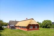 Det kønne, stråtækte sommerhus er opført i 1973, men det er tydeligt at se på den velholdte stand, at der er sket meget i mellemtiden. Inden døre giver det moderne køkken i opholdsrummet jer for eksempel en dejlig ramme om madlavningen, og takket være den åbne planløsning kan I sagtens tage del i familiehyggen, selvom I står og rører i gryderne. I opholdsrummet er der desuden brændeovn og fladskærms-TV, og de store vinduespartier sørger for gennemstrømmende lysindfald. I stueplan består planløsningen desuden af et badeværelse og et soveværelse, og går I ovenpå, finder I to ekstra soverum. På førstesalen er der installeret en infrarød sauna, så I kan forkæle jer selv med en afslappende saunatur, når I kommer hjem efter dagens udflugter og eventyr.