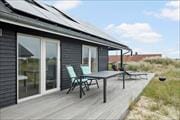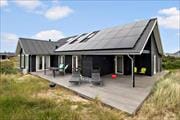 Hus-ID: 0244Dette moderne kvalitets sommerhus er den perfekte base for livsnydere, der trænger til en afslappende ferie ved stranden. Sommerhuset er stort, stilfuldt indrettet og udstyret med sauna og andre lækre detaljer, og så ligger det på en lukket vej tæt på det åbne klitlandskab, der fører ned mod Lakolk Strand.