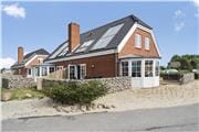 Ferieboligen udgør den ene halvdel af et muret dobbelthus, som er et energivenligt kvalitetsbyggeri med solvarmeanlæg. Husets høje standard kan også fornemmes inden døre: I stueplan såvel som på førstesalen er atmosfæren lys og indbydende, og alle rum er smagfuldt indrettet med komfortable møbler. Størstedelen af stueplanets kvadratmeter er dedikeret til et herligt opholdsrum med stue og køkken i åben forbindelse. Her er både gulvvarme og brændeovn, og køkkenet er veludstyret, så I behøver ikke at gå på kompromis med feriemadlavningen. Spisebordet er placeret ved en solrig karnap, og herfra kan I beundre havudsigten, mens maden nydes. To gode soveværelser med dobbeltseng ligger på førstesalen, og derudover har I adgang til en hems med sækkestole og to madrasser – her kan familiens yngste medlemmer oplagt installere sig. Huset har to gode badeværelser, det ene med spabad.
