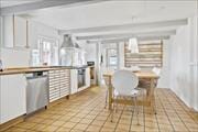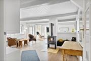 Det trelængede Rømø-hus kan dateres helt tilbage til 1857, og efter en grundig modernisering fremstår det lyst, velholdt og særdeles indbydende inden døre. Ejendommens 132 m² er fornuftigt fordelt, så her er blandt andet tre pæne soveværelser og et rummeligt badeværelse at gøre godt med. En stor del af det indendørs ferieliv kommer formentlig til at foregå i husets store spisekøkken og i den tilstødende stue, som er indrettet med brændeovn, spisebord og flere komfortable siddemøbler. En af de allerbedste detaljer er nu nok udsigtsvinduet, for takket være den store rude kan I skue lige ud på grundens smukke sø, når I hygger jer indenfor i varmen.
