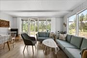 Drømmer du om et hyggeligt sommerhus, hvor naturen er lige udenfor døren, og hvor lyset strømmer ind gennem panoramavinduer? Dette nyligt renoverede sommerhus på Dværgternen ved Sønderstrand inviterer dig indenfor i et lyst og venligt hjem, der kombinerer moderne komfort med den autentiske ø-stemning. De hvide trævægge og loftet giver rummet en let og frisk atmosfære, mens det lyse eg gulv og de lyse farver skaber en varm og indbydende stemning. Her er god plads til hygge i stuen med brændeovn, hvor du nemt kan slappe af efter en dag på stranden eller i naturen. De to gode værelser tilbyder komfortable sovepladser med mulighed for at ændre sengenes konfiguration, og der er plads til en ekstra barneseng i det ene værelse. Det nyrenoverede badeværelse i sandfarvede fliser med gulvvarme, stort bruserum og vaskemaskine byder på både funktionalitet og komfort. Det komplette køkken er bl.a. udstyret med glaskeramisk komfur og mikroovn. Gratis Wi-Fi og Internet TV gør underholdningen nem at få adgang til.