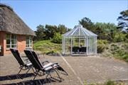 Med en naturgrund på hele 2652 m2 får udendørslivet fine betingelser. Grunden glider naturligt ind i det omgivende landskab, hvor husene ligger spredt med god afstand imellem sig. Her kan du nyde ferieidyllen på ugeneret vis, og der er mange hyggelige kroge, hvor du kan slappe af i solen og den friske luft. Der medfølger blandt andet en pavillon og en overdækket bålplads. På den store terrasse mod syd kan du dække op til hyggelige frokoster i det fri, og familiens yngste vil med sikkerhed elske at lege i de tilbagelænede omgivelser. Drømmer du om fred, ro og flot natur på ferieturen, er dette uden tvivl en ideel beliggenhed.
