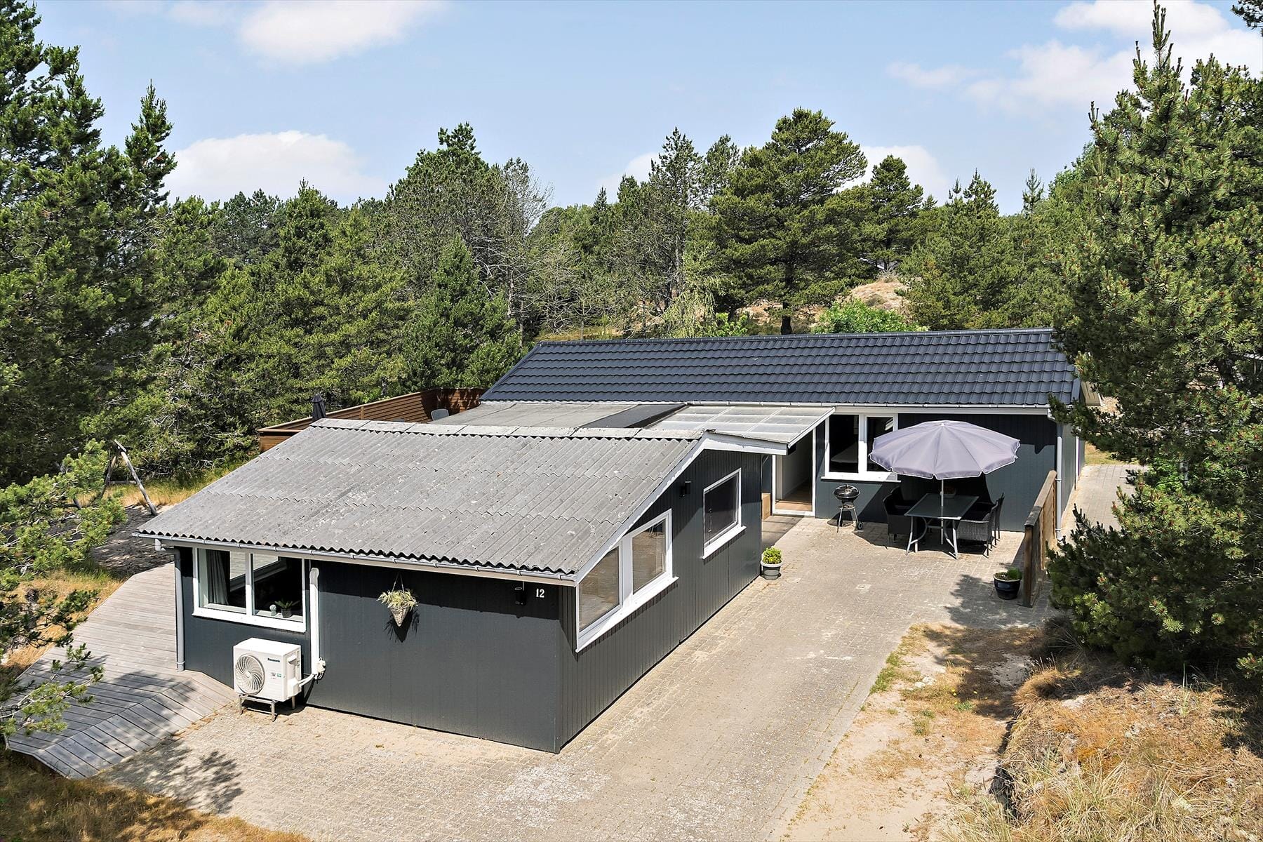 Atmosfæren er lys, let og indbydende inden døre, hvor du kan brede dig på hele 96 m². Der er tre soveværelser i huset, så der er sagtens plads til seks feriegæster. Alle tre soveværelser er udstyret med en dobbeltseng. Et badeværelse hører selvfølgelig også med til planløsningen, og som en skøn livsnyderdetalje er der installeret en sauna i sommerhuset. Derudover er en stor del af kvadratmeterne dedikeret til opholdsafdelingen: Her ligger køkken og to stuer i åben forbindelse, blot adskilt af et enkelt trin. Den ene stue er udstyret med bløde siddemøbler, fladskærms-tv og varmepumpe, mens den anden byder på spisebord og en komfortabel sofa.