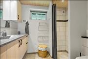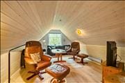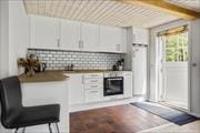 Med stråtag, hvide sprossevinduer og gedigen murstensfacade præsenterer sommerhuset sig på klassisk og særdeles charmerende vis, hvilket går godt i spænd med de naturskønne omgivelser. Udsigten til grundens træer får du også glæde af inden døre – for både fra stueplan og førstesalen kan du skue lige ud i det grønne. En stor del af stueplan er dedikeret til et dejligt køkken-alrum, hvor der er god plads til at kokkerere og hygge sig om spisebordet nær brændeovnen. Får du lyst til en lidt blødere siddeplads, kan du rykke op i førstesalens stue, hvor du kan slænge dig i sofaen eller slå dig ned i en lænestol med en god bog. Sommerhusets tre soveværelser er placeret både oppe og nede, mens et flot badeværelse hører til planløsningen i stueplan.